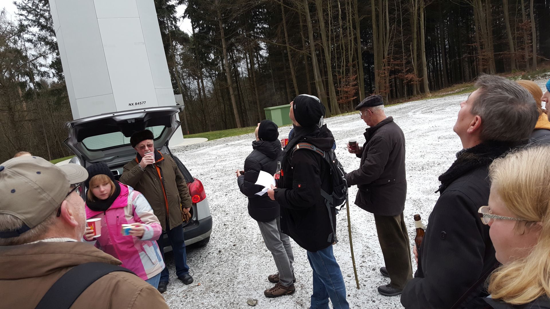 Es war so kalt, dass manche Getränke nach dem öffnen in der Flasche gefroren. Carsten Hilf versorgte die Musikanten mit Informationen über die neuen Windkraftanlagen, welche er von Bürgermeister Horst Kaiser zur Verfügung gestellt bekommen hatte. Wie aufs Stichwort startete die Anlage, als Carsten seinen Vortrag begann, was zur Belustigung der Musikanten beitrug.